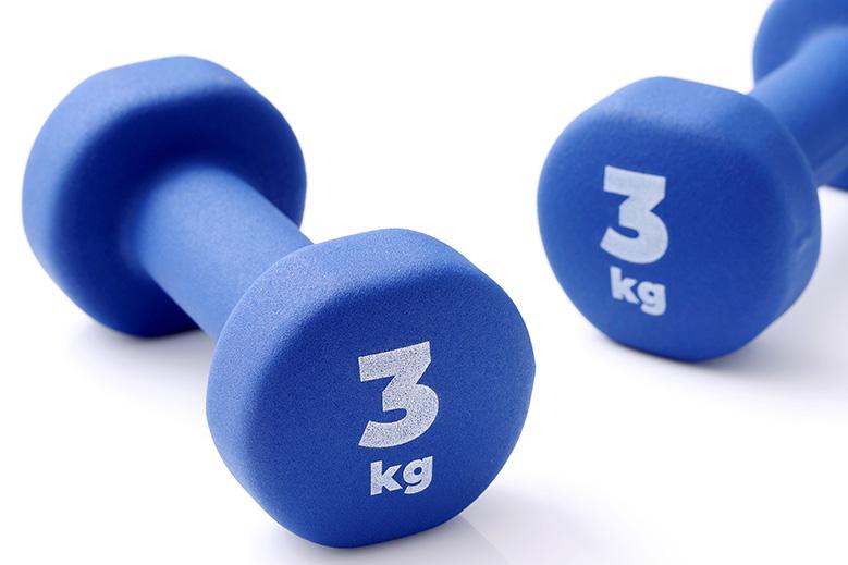 佐藤 女性なら2~3㎏がいいでしょう。体力に自信がある、下半身をすっきりさせたい、体重を落としたいという人は4㎏程度がおすすめです。トレーニング経験に自信がない人や、重さを持つことが不安な人は最初は2㎏でも重く感じるかもしれませんが、定期的にトレーニングしていれば1~2週間で慣れてきます。1㎏や500gのものでも可動域を広げるためには有効的ですが、筋肉量を増やして痩せたい! と思っている人は「ちょっと重いかな…」と感じる重さに挑戦しても良いと思います。