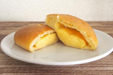 口どけのよい生地でカスタード風クリームを包んで焼き上げ、さらにカスタード風クリームが入っています。