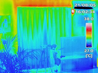 ②15:20頃:エアコンを入れてから20分後にサーキュレーターON。部屋の下部分から冷え始め、壁や床も徐々に温度が低くなる。